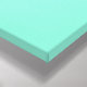 Wrapped canvas in a vector drawing of a peacock feather, enhanced and rendered in a soft conte crayon effect - turquoise / peacock green, with rust and cobalt blue eye, on a pastel aqua background