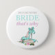 Change the wording to turn this into a wedding, engagement or bachelorette party button. Turquoise blue & pink. Shoe & satin pillow with rings and a rose motif.
