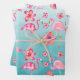Turquoise Pink Flamingoes & Pink Hibiscus 2 Wrapping Paper Sheet