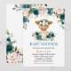 Turquoise & Pink Floral Highland Cow Baby Shower Invitation