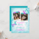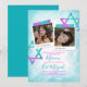 Unique teal, pink, and silver glitter Bat Mitzvah invitation with hints of turquoise, blue, and purple gradients. Cute square photos with star of David artwork on soft turquoise watercolor is a beautiful vintage look for your birthday celebration. Photo captions can be changed to any beautiful wording you choose. Easily upload your photos into the photo frames.