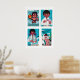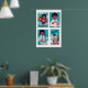 Turquoise & Pink Matchbox Labels Grid Print, Vintage Ephemera Poster, International Collection, Midcentury Style, turquoise wall art 1