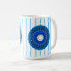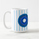 This sunny cup (or mug) features beautiful blue mandalas against a turquoise and white pin stripe backdrop. If you're into mandalas, geometry, or just enjoy interesting designs, this cup might be a good way to chug your morning java or sip your evening tea. Various other kitchen decor items are available with a blue mandala design.