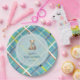 Turquoise Plaid Teddy Bear Boy Baby Shower Paper Plate