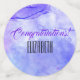 This colourful confetti abstract design features a pastel watercolor background of blue, purple, and pink. The three sizes show a different element of the overall design. The small has three rings of colours from the design. The large has the template message. Fill in the template fields with the front and back information or click customise to select a typeface style, size, and colour you like.
