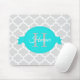 Add an elegant touch to your computer workspace with a Turquoise Quatrefoil Personalised Mouse pad. Mouse pad design features a simple quatrefoil background and fancy emblem to personalise with your name and monogram. Additional items available with this design as well. Please contact me directly for assistance with personalisation.