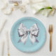 Turquoise Robin's Egg Blue Big White Bow Bridal Paper Plate