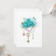 Antique gold key with trendy turquoise roses decorated with leaves of white gold and pink and blue beads. Fashionable colour. Turquoise roses. White gold. Blue tiffany.