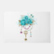 Antique gold key with trendy turquoise roses decorated with leaves of white gold and pink and blue beads. Fashionable colour. Turquoise roses. White gold. Blue tiffany.