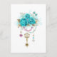 Antique gold key with trendy turquoise roses decorated with leaves of white gold and pink and blue beads. Fashionable color. Turquoise roses. White gold. Blue tiffany.