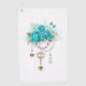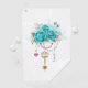 Antique gold key with trendy turquoise roses decorated with leaves of white gold and pink and blue beads. Fashionable colour. Turquoise roses. White gold. Blue tiffany.