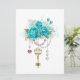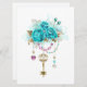 Antique gold key with trendy turquoise roses decorated with leaves of white gold and pink and blue beads. Fashionable colour. Turquoise roses. White gold. Blue tiffany.