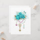 Antique gold key with trendy turquoise roses decorated with leaves of white gold and pink and blue beads. Fashionable colour. Turquoise roses. White gold. Blue tiffany.
