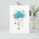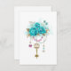 Antique gold key with trendy turquoise roses decorated with leaves of white gold and pink and blue beads. Fashionable colour. Turquoise roses. White gold. Blue tiffany.
