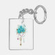 Antique gold key with trendy turquoise roses decorated with leaves of white gold and pink and blue beads. Fashionable colour. Turquoise roses. White gold. Blue tiffany.