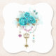 Antique gold key with trendy turquoise roses decorated with leaves of white gold and pink and blue beads. Fashionable colour. Turquoise roses. White gold. Blue tiffany.