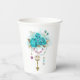 Antique gold key with trendy turquoise roses decorated with leaves of white gold and pink and blue beads. Fashionable colour. Turquoise roses. White gold. Blue tiffany.