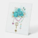 Antique gold key with trendy turquoise roses decorated with leaves of white gold and pink and blue beads. Fashionable color. Turquoise roses. White gold. Blue tiffany.