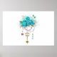 Antique gold key with trendy turquoise roses decorated with leaves of white gold and pink and blue beads. Fashionable colour. Turquoise roses. White gold. Blue tiffany.