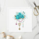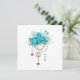 Antique gold key with trendy turquoise roses decorated with leaves of white gold and pink and blue beads. Fashionable colour. Turquoise roses. White gold. Blue tiffany.
