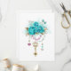 Antique gold key with trendy turquoise roses decorated with leaves of white gold and pink and blue beads. Fashionable colour. Turquoise roses. White gold. Blue tiffany.