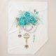 Turquoise Roses with Keys Sherpa Blanket