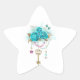 Antique gold key with trendy turquoise roses decorated with leaves of white gold and pink and blue beads. Fashionable color. Turquoise roses. White gold. Blue tiffany.