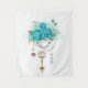 Antique gold key with trendy turquoise roses decorated with leaves of white gold and pink and blue beads. Fashionable colour. Turquoise roses. White gold. Blue tiffany.