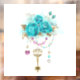 Antique gold key with trendy turquoise roses decorated with leaves of white gold and pink and blue beads. Fashionable colour. Turquoise roses. White gold. Blue tiffany.
