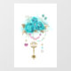 Antique gold key with trendy turquoise roses decorated with leaves of white gold and pink and blue beads. Fashionable colour. Turquoise roses. White gold. Blue tiffany.