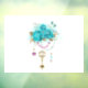 Antique gold key with trendy turquoise roses decorated with leaves of white gold and pink and blue beads. Fashionable colour. Turquoise roses. White gold. Blue tiffany.