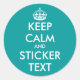 Turquoise round KeepCalm Stickers | personalizable. Customisable Keepcalm template with custom aqua blue background colour and text. Vintage Keepcalmandcarryon theme. Create your own Keep calm parody.
