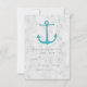 Perfect for a nautical themed wedding is this Rustic Anchor Wedding Response Card with a turquoise boat anchor on a light grey marble look background. This classic and simple RSVP card is easy to customise with your wedding details. Find more personalisation options by clicking Customise.
