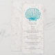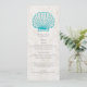 Perfect for a nautical themed wedding is this Rustic Seashell Wedding Menu Card with a turquoise seashell on a light beige marble look background. This classic and simple beach wedding menu is easy to customise with your wedding details. Find more personalisation options by clicking Customise.