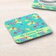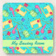 Trendy turquoise aqua sewing art cork coasters are great for your sewing room, shop or business or home. A light lime green strip is shown with "My Sewing Room" and can be changed to customise with your name, initials, business name or other text. The green strip and text can be deleted if you prefer just the sewing art without personalisation. The art includes whimsy sewing machines, spools of thread, rotary cutters, scissors, embroidery floss, pin cushions, pins and needles. Fully customisable and personalizable.