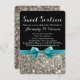 Turquoise Silver Glitter Sweet 16 Party Invitation