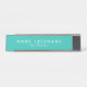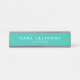 Customise this Modern Stylish Clean Minimalist Sleek and Simple Turquoise Desk Nameplate with white fonts.