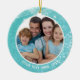 Design your own keepsake or gift ornament with two photos on this double-sided ceramic ornament featuring a turquoise and white sparkle bokeh design and a place to add your personalised text on the front. Generic enough to use for any photo or occasion (i.e., family, pet, baby, winter vacation, etc). The back side features the same design and another photo. (PHOTO TIP: For fastest/best results, choose a photo with the subject in the middle and/or pre-crop your image to a square shape BEFORE uploading it and it will fill in the photo space provided perfectly.) The text font style, size and colour can be changed by clicking on the "Click to customise further" tab. OTHER STYLES: Note that other ornament styles to choose from on the ordering page may not offer back side printing. Contact the designer if you'd like this design on another item.