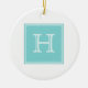 Add your initials or other text to customise this simple and modern Square Monogram Ornament in turquoise and white. This trendy and chic ornament would make a simple decoration.