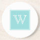 Add your initials or other text to customise this simple and modern Square Monogram Sandstone Coaster in turquoise and white. This trendy and chic coaster is the perfect place to set your drinks while protecting your furniture.