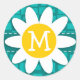 Turquoise Squares; Retro Square; Daisy Classic Round Sticker