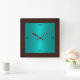 Turquoise Stainless Steel Modern Burlap Border Square Wall Clock