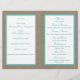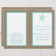The rustic burlap effect background gives these programs a boho-chic feel, while the tropical turquoise has a fresh and cool colour scheme that can be used throughout your wedding. The cute starfish is the perfect finishing touch for any elegant beach wedding.