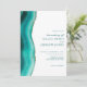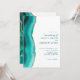 Minimalist wedding invitation featuring turquoise agate marble stone background and simple chic graphic design.