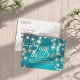 Wedding Save The Date Postcard Templates - Elegant Faux Gold Foil Save the Date Lettering Script and Vintage String Lights with Turquoise Blue Glitter Sparkle Background.