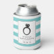 Celebrate your bachelorette party, hen night or bachelorette weekend with these cute and stylish can coolers, featuring a vibrant turquoise teal and white striped background, a diamond ring illustration and chic black lettering. Personalise with the bride to be's name and party date.