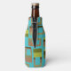 This bottle cooler has a mid-century modern design of rounded rectangles in shades of green and brown with holes in them on a field of turquoise. If you like the design but prefer different colours, message me.