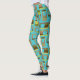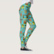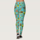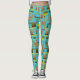 These leggings have a mid-century modern design of rounded rectangles in shades of green and brown with holes in them on a field of turquoise. If you like the design but prefer different colours, message me.