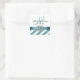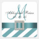 Stylish Wedding Favour Stickers with a Turquoise and White Stripes Pattern, with PRINTED photo of a turquoise satin ribbon and diamond brooch, personalised with Monogram, Initial Names and Wedding Date. Elke Clarke© for Monogram Gallery. For different colour combinations please contact luxuryweddinginvitations@gmail.com