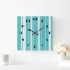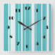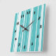 Custom Wall Clock with a turquoise and white stripe pattern and a Broadway font clock face.